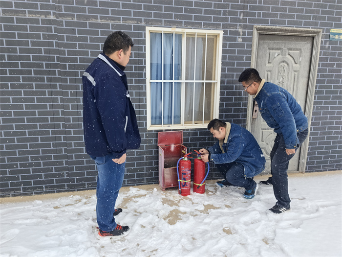 2024年2月27日,景电二期古浪灌区水资源集约节约暨生态保护工程2号水池项目成员已全部到岗,由分公司副经理、安全负责人主持召开复工复产安全会议,对项目全体成员的岗位工作进行了初步安排,并成立了安全小组和应急救援小组。安全小组成员先后对生活区灭火器、生活用电、厨房液化气瓶等进行了全面检查,并对I、II级调蓄水池坝顶、边坡、进水口、阀门、外围栏等重点部位,严格按照值班表轮流检查,切实营造“不安全不复工”的安全氛围,确保工程项目在复工复产过程中无事故、无隐患。