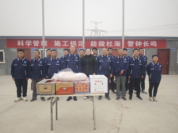 在项目现场,领导们详细了解了工程进度、安全生产以及员工们的工作和生活情况。随后,为他们送去了节日的祝福和慰问品。鼓励大家继续发扬顽强拼搏、迎难而上的精神,集中精力搞好建设,切实抓好施工管理、质量管理,确保安全、文明施工,在确保安全生产和进度的前提下,努力提升工程质量。