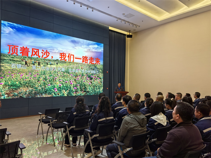 参观结束后,第二代治沙人代表、时代楷模石银山以《顶着风沙,我们一路走来》为题,为全体党员干部讲了一堂生动的党课,使大家深刻感受到“六老汉”三代人情系家园、艰苦奋斗的创业精神和接续奋斗、久久为功的坚定理想信念,生动诠释了六老汉“困难面前不低头、敢把沙漠变绿洲”的新时代愚公精神。